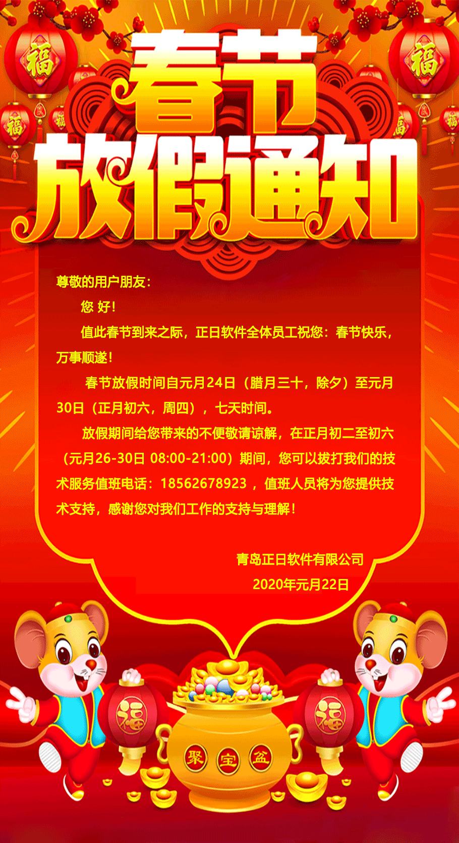 通知 | 春節(jié)放假期間正月初二至初六技術(shù)服務(wù)不打烊