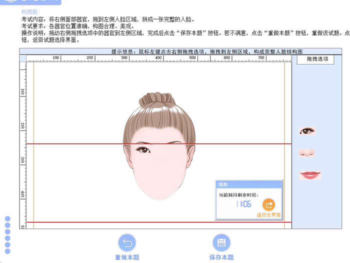 ★ 系統(tǒng)遵照設(shè)定的“三庭五眼”等美學(xué)標(biāo)準(zhǔn)誤差范圍,對(duì)答案進(jìn)行自動(dòng)判分。