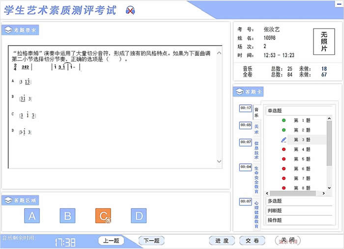 在該背景下,青島正日軟件根據(jù)全國(guó)藝術(shù)學(xué)科的考試需求研制開發(fā)了“正日藝術(shù)學(xué)科考試系統(tǒng)”。該系統(tǒng)是一款集命題、報(bào)名、考場(chǎng)編排、在線監(jiān)考、考生作答、自動(dòng)判分和成績(jī)統(tǒng)計(jì)分析于一體的機(jī)考平臺(tái),用戶可根據(jù)音樂、美術(shù)等課標(biāo)要求,用于組織多學(xué)科、大規(guī)模的高利害上機(jī)考試,系統(tǒng)除支持客觀題外,還支持視唱、節(jié)奏、表演、構(gòu)圖、透視等十多種操作題的自動(dòng)判分。