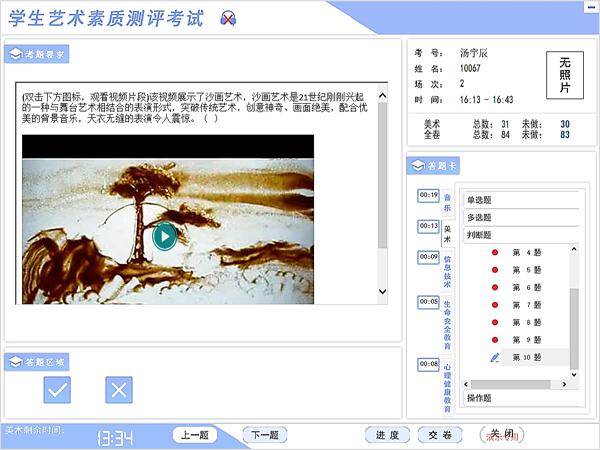 考試系統(tǒng)具有良好的擴(kuò)展性,用戶可根據(jù)各省、地市的實(shí)際考試需求,將“信息技術(shù)”、“生命安全”、“心理健康”等學(xué)科放進(jìn)藝術(shù)學(xué)科考試系統(tǒng),形成“多考合一”考試模式,這樣可通過一次考試組織即可完成多門學(xué)科統(tǒng)一考試的目標(biāo),大大節(jié)省了考試主管單位的考試組織費(fèi)用。