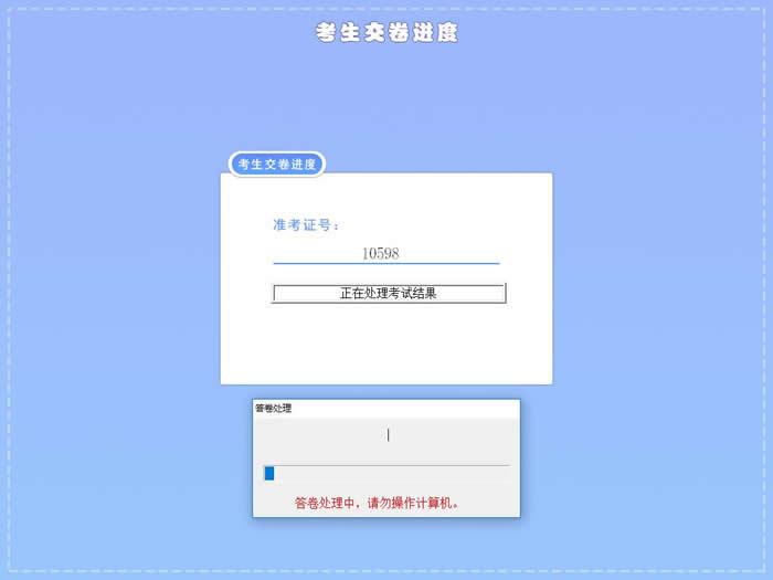 客戶端支持自動(dòng)閱卷,當(dāng)考生點(diǎn)擊“交卷”按鈕,就觸發(fā)了客戶端閱卷、收卷過程。客戶端會(huì)自動(dòng)對(duì)考生抽取試卷的每道試題進(jìn)行自動(dòng)閱卷,對(duì)于部分首次閱卷為0分的試題還會(huì)進(jìn)行二次閱卷,確保閱卷的準(zhǔn)確性,提高考試公平性。