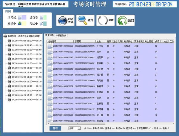 6)強(qiáng)大的考場(chǎng)管理:圖形化、流程化的控制臺(tái)軟件,對(duì)考試中的設(shè)備、考生、場(chǎng)次、數(shù)據(jù)、日志、異常進(jìn)行全面管理;