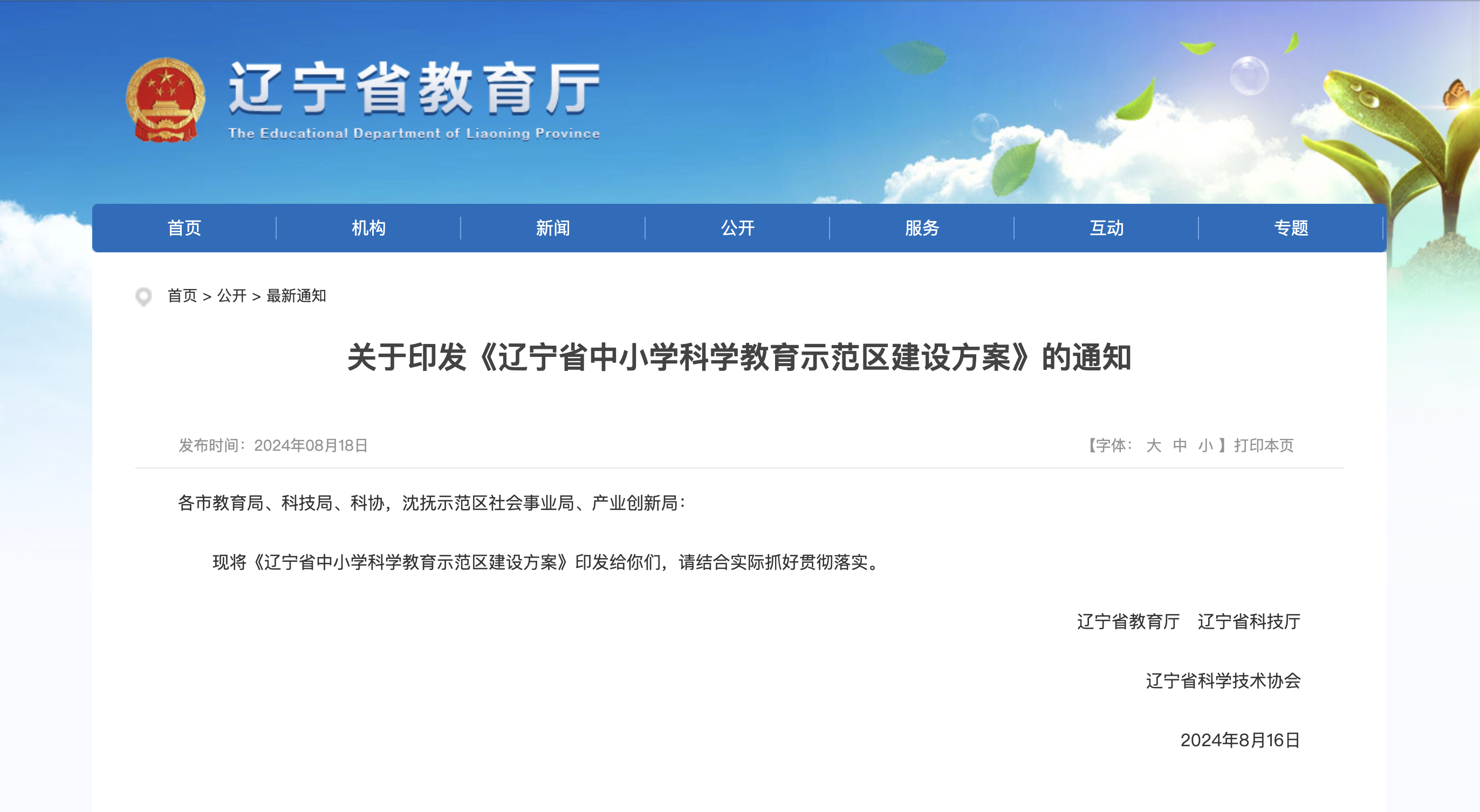 為深入貫徹習近平總書記關于在教育“雙減”中做好科學教育加法的重要指示精神,深入學習貫徹黨的二十大和二十屆三中全會精神,全面落實《教育部等十八部門關于加強新時代中小學科學教育工作的意見》《中共遼寧省委貫徹落實<中共中央關于進一步全面深化改革、推進中國式現(xiàn)代化的決定>的意見》,以及教育部、遼寧省部省會商會議精神,打造遼寧省中小學科學教育示范區(qū),形成具有遼寧特色的科學教育品牌,切實發(fā)揮示范引領作用,推動科學教育高質量發(fā)展,助力教育強省建設。