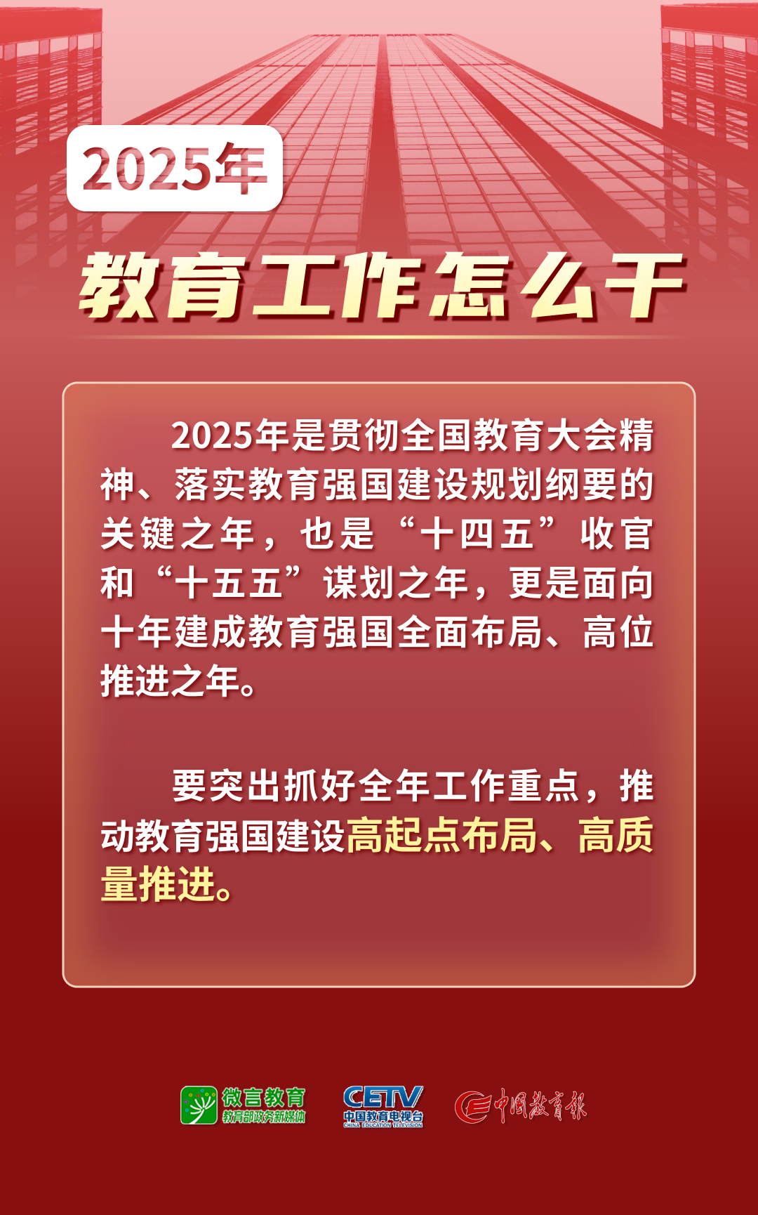 本次會議圍繞組織實施教育強國建設(shè)規(guī)劃綱要,安排布置年度重點任務(wù),確保教育強國建設(shè)高起點布局、高質(zhì)量推進。會議重點圖解如下: