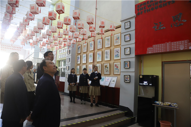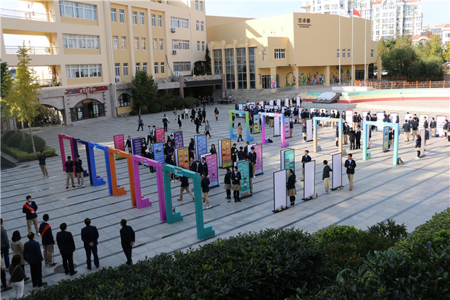 隨后各位領(lǐng)導(dǎo)來到學(xué)校禮堂的外廊欣賞了青島二中同學(xué)的藝術(shù)作品展。人物肖像、特色篆刻等每一件藝術(shù)作品都是同學(xué)們藝術(shù)素養(yǎng)提升的象征,在青島二中的三年高中生活中,每一位同學(xué)都能通過學(xué)校搭建的平臺提升自己的一項藝術(shù)才能,實現(xiàn)個人的終生發(fā)展。