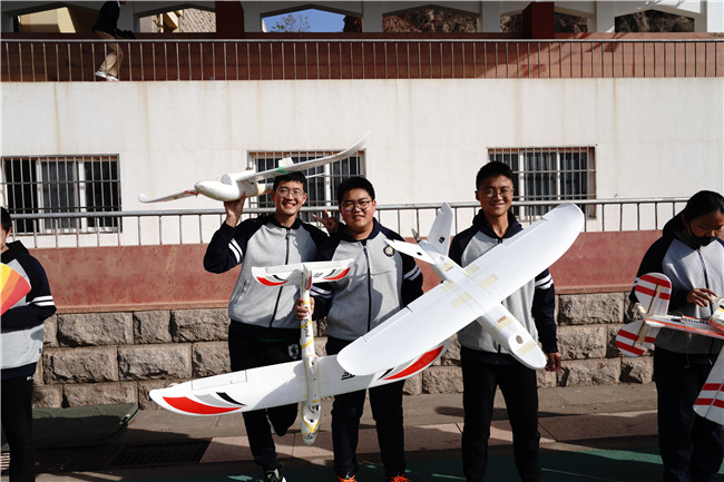 在學(xué)生代表們的引導(dǎo)下,各位市領(lǐng)導(dǎo)和青島二中校領(lǐng)導(dǎo)首先來到了青島二中田徑場,航模隊的成員們正在現(xiàn)場操作,展示各類航模比賽飛行的場景。青島二中航空模型系列活動以課程為核心、以項目為引領(lǐng),培養(yǎng)學(xué)生優(yōu)勢智能,支持學(xué)生深度學(xué)習(xí)。學(xué)生通過參與理論學(xué)習(xí)、模型制作、計算機模擬訓(xùn)練、外場遙控飛行,參與航空主題的課題研究,參加各級各類集訓(xùn)和比賽的全過程以提升自身的科技素養(yǎng)與創(chuàng)新能力。青島二中針對高一MT團隊開設(shè)了具有航空特色的綜合實踐課程,在初級課程的基礎(chǔ)上選拔優(yōu)秀的學(xué)生,組成航模隊,開展飛行訓(xùn)練。同時為了培養(yǎng)學(xué)生的創(chuàng)新能力和科技素養(yǎng),支持學(xué)生的優(yōu)勢智能培養(yǎng)與深度學(xué)習(xí),青島二中還舉辦了眾多創(chuàng)新實踐活動,培養(yǎng)學(xué)生的深入研究及創(chuàng)新能力。