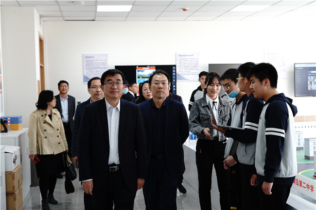 緊接著,領(lǐng)導(dǎo)們漫步在二中校園,進入了青島二中科創(chuàng)中心參觀。青島二中目前已建成創(chuàng)新實驗室12個,在建創(chuàng)新實驗室11個,創(chuàng)新課程覆蓋人數(shù)達800人。同時,青島二中還依托創(chuàng)新實驗室、創(chuàng)新課程,聯(lián)合中國海洋大學(xué)、中科大海洋研究所等17個基地開展學(xué)術(shù)素養(yǎng)提升計劃,聘任導(dǎo)師200余人,參與人數(shù)達3200人。二中通過創(chuàng)新人才培養(yǎng)體系,全面引導(dǎo)學(xué)生參與一項科技創(chuàng)新活動,通過課程、實驗室、課題、比賽等平臺,使每位學(xué)生均能實現(xiàn)“人人有課題,人人有項目,人人有成果”。