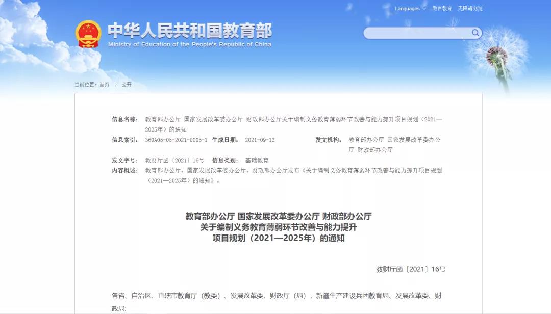 近日,教育部辦公廳、國家發(fā)展改革委辦公廳、財政部辦公廳等三部門聯(lián)合印發(fā)《關(guān)于編制義務(wù)教育薄弱環(huán)節(jié)改善與能力提升項目規(guī)劃(2021—2025年)的通知》(以下簡稱通知),具體內(nèi)容來跟中小學(xué)信息素養(yǎng)評測系統(tǒng)的小編一起看看吧。