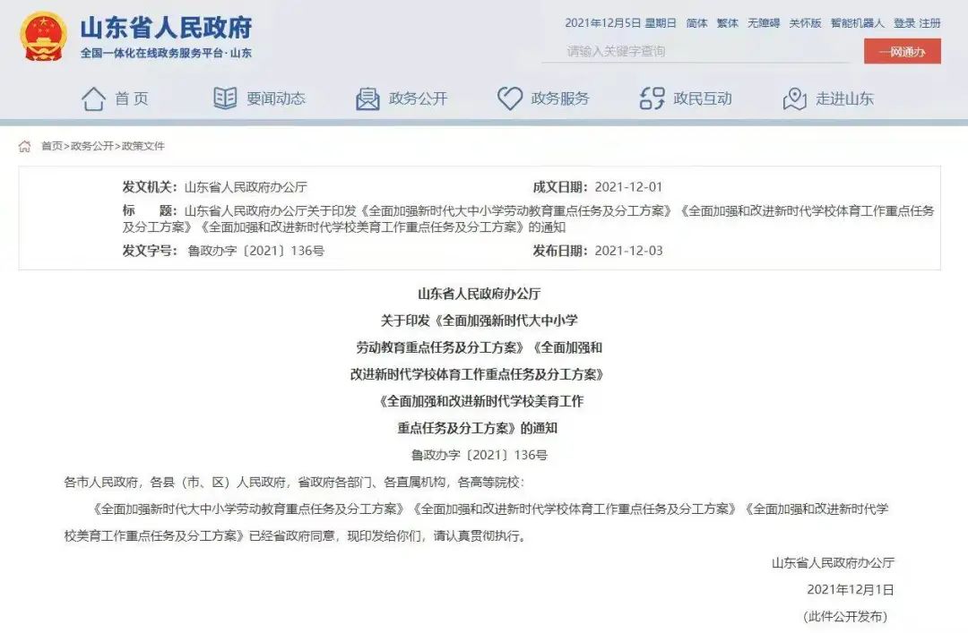山東省人民政府辦公廳2021年12月3日印發(fā)