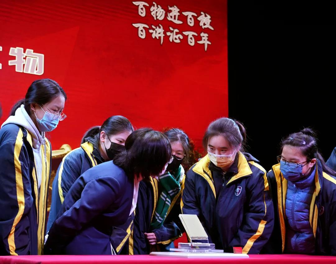 1月4日,中共一大紀(jì)念館的文物保管人員與觀摩文物的上海市格致中學(xué)學(xué)生交流。新華社記者 劉穎 攝