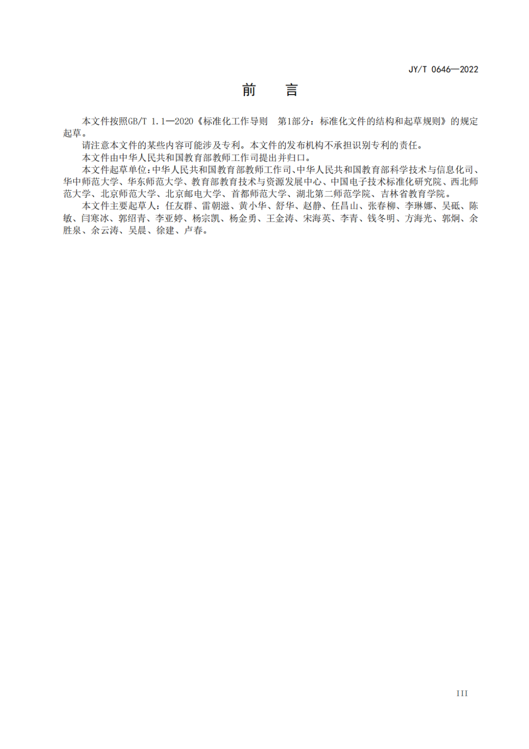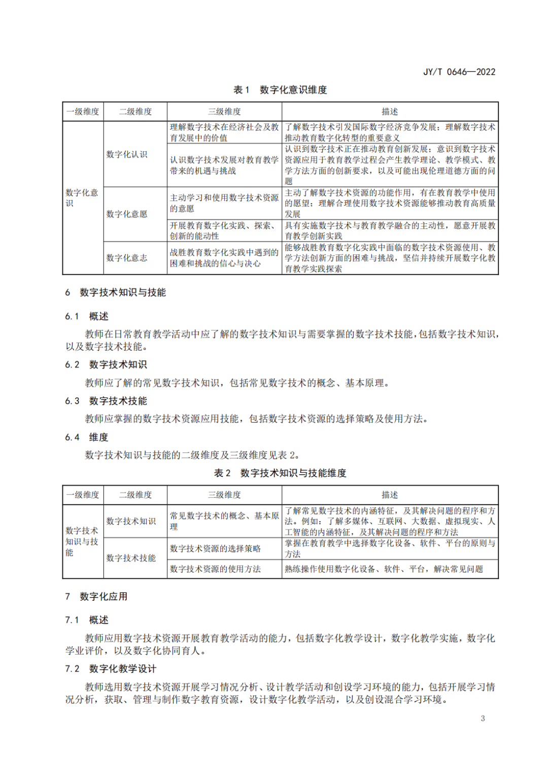 為深入貫徹落實黨的二十大精神,扎實推進國家教育數(shù)字化戰(zhàn)略行動,完善教育信息化標準體系,提升教師利用數(shù)字技術優(yōu)化、創(chuàng)新和變革教育教學活動的意識、能力和責任,我部研究制定了《教師數(shù)字素養(yǎng)》標準,現(xiàn)作為教育行業(yè)標準予以發(fā)布,并自發(fā)布之日起施行。