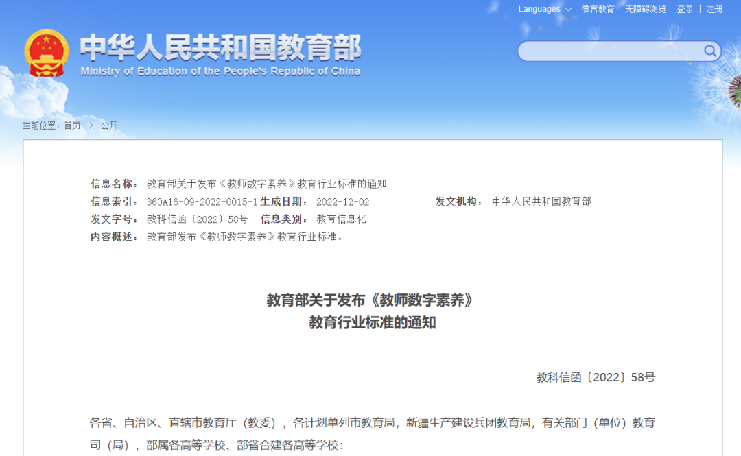 教育部關于發(fā)布《教師數(shù)字素養(yǎng)》