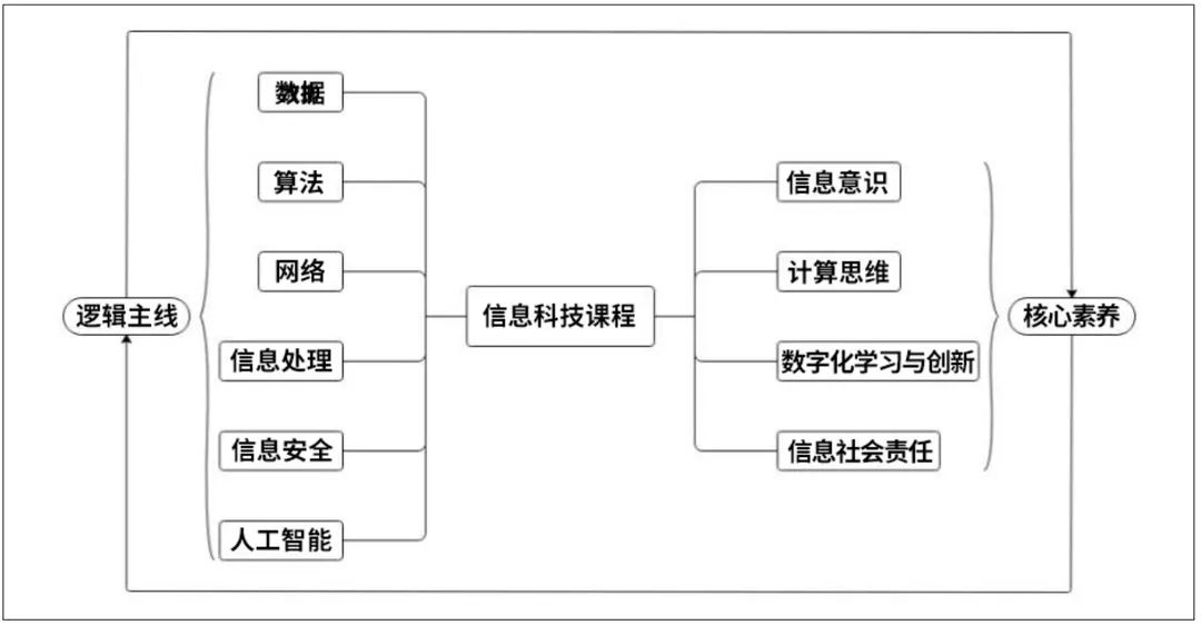 在特定內(nèi)容模塊中的知識(shí)邏輯體系也有一定的關(guān)聯(lián)性。例如,將數(shù)據(jù)、信息處理和信息安全組建成一個(gè)新的內(nèi)容模塊,網(wǎng)絡(luò)、信息處理、人工智能可以構(gòu)建另外一個(gè)內(nèi)容模塊。所以,為了發(fā)展學(xué)生的不同素養(yǎng),教師可以從不同的角度來(lái)選擇學(xué)習(xí)內(nèi)容,并循序漸進(jìn)地形成知識(shí)內(nèi)容體系。