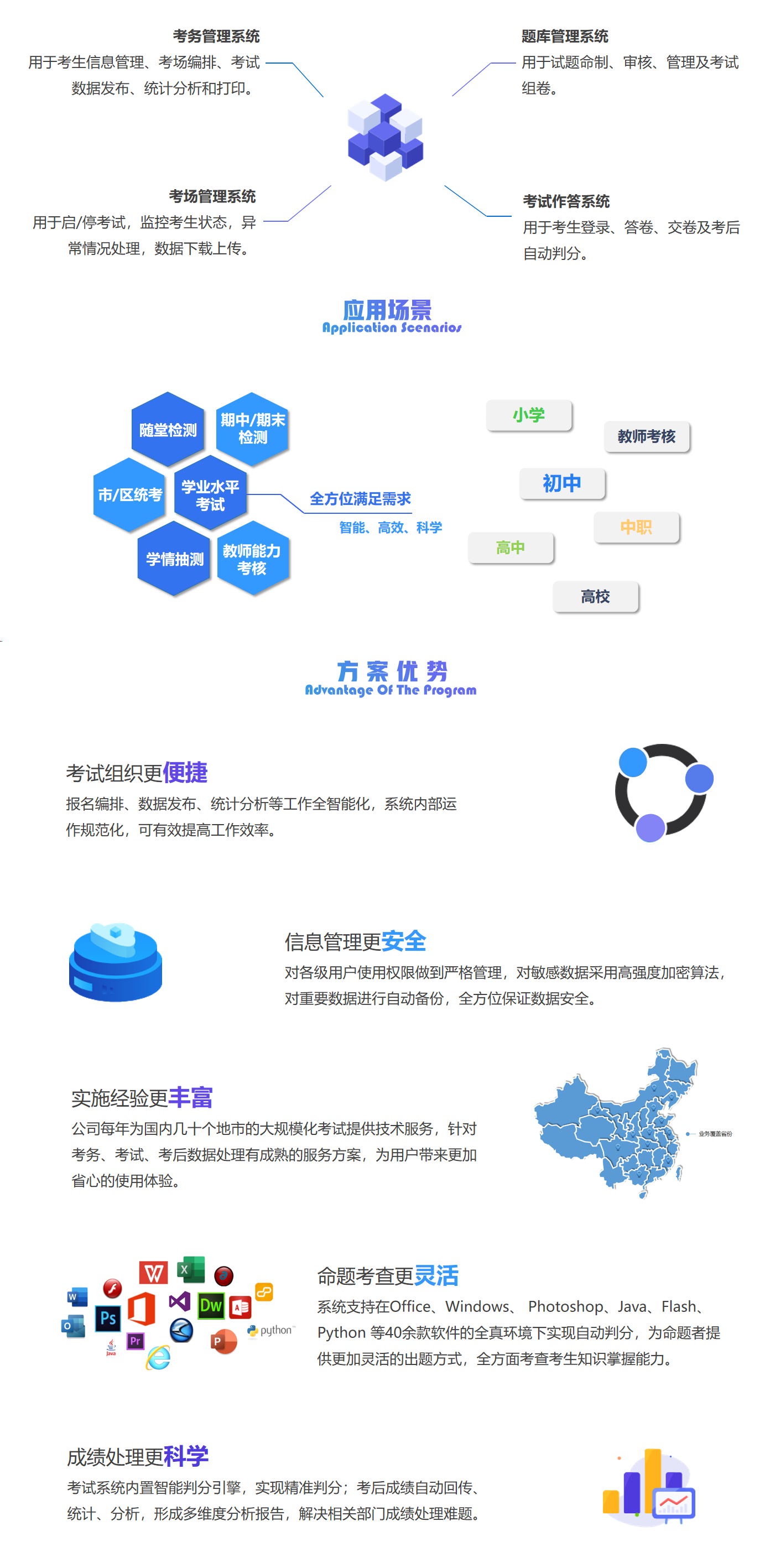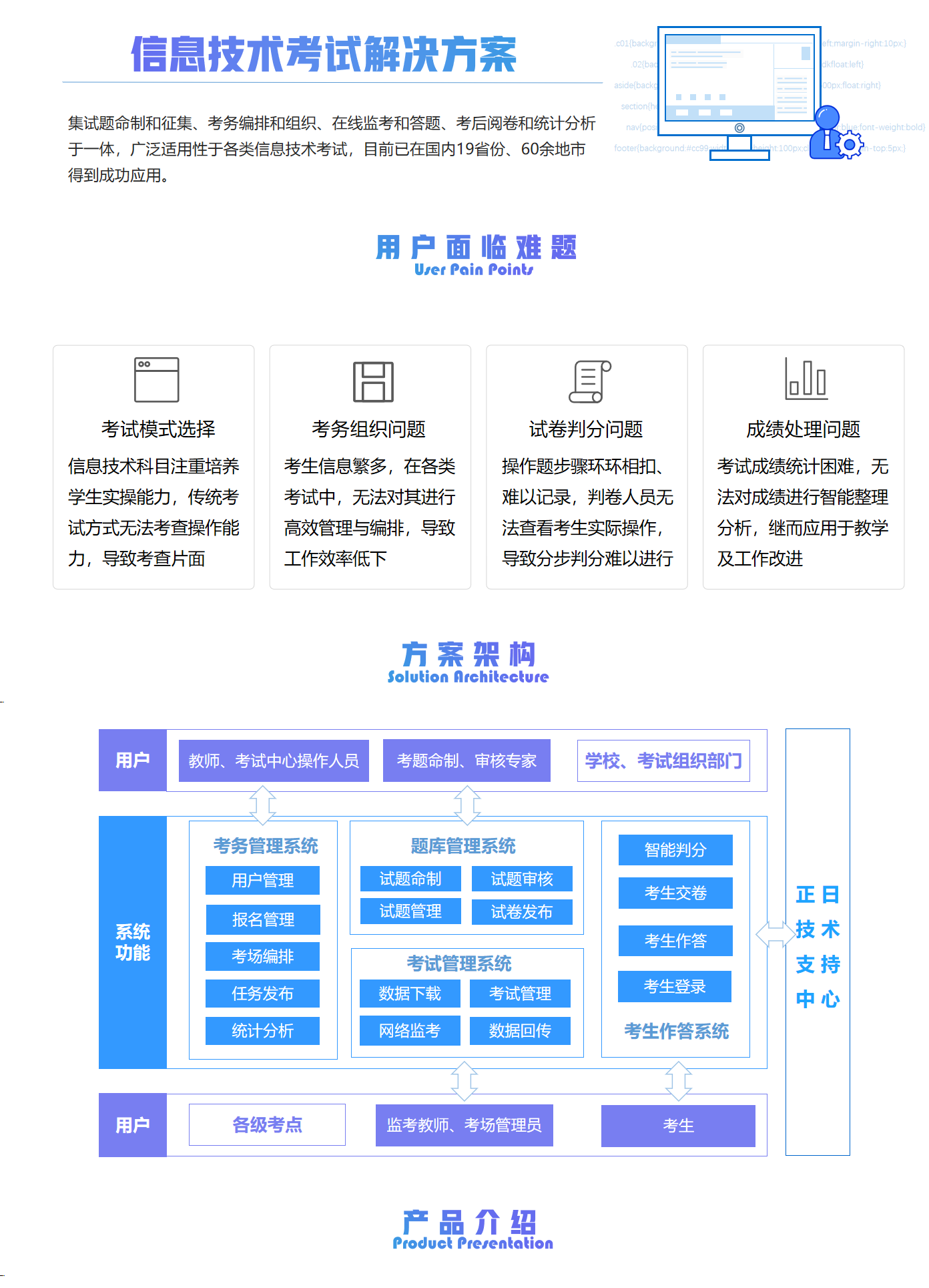 正日信息技術(shù)考試系統(tǒng),是針對(duì)中小學(xué)信息技術(shù)考試研發(fā)的全智能化機(jī)考平臺(tái),集試題命制和征集、考務(wù)編排和組織、在線監(jiān)考和答題、考后閱卷和統(tǒng)計(jì)分析于一體,以用戶需求為主導(dǎo),為用戶提供信息技術(shù)上機(jī)考試系統(tǒng)。