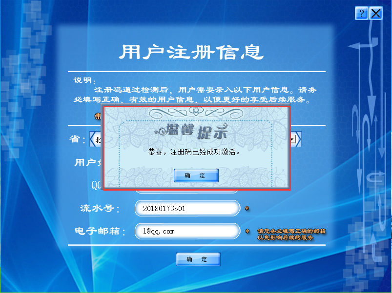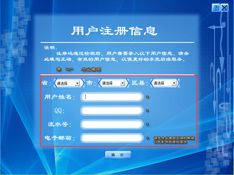 ③在彈出的“用戶注冊(cè)信息”界面如實(shí)填寫自己的真實(shí)信息,并單擊“確定”