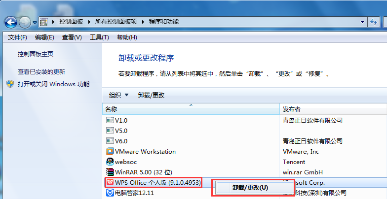④找到WPS程序,并在這個(gè)程序上單擊右鍵,進(jìn)行卸載